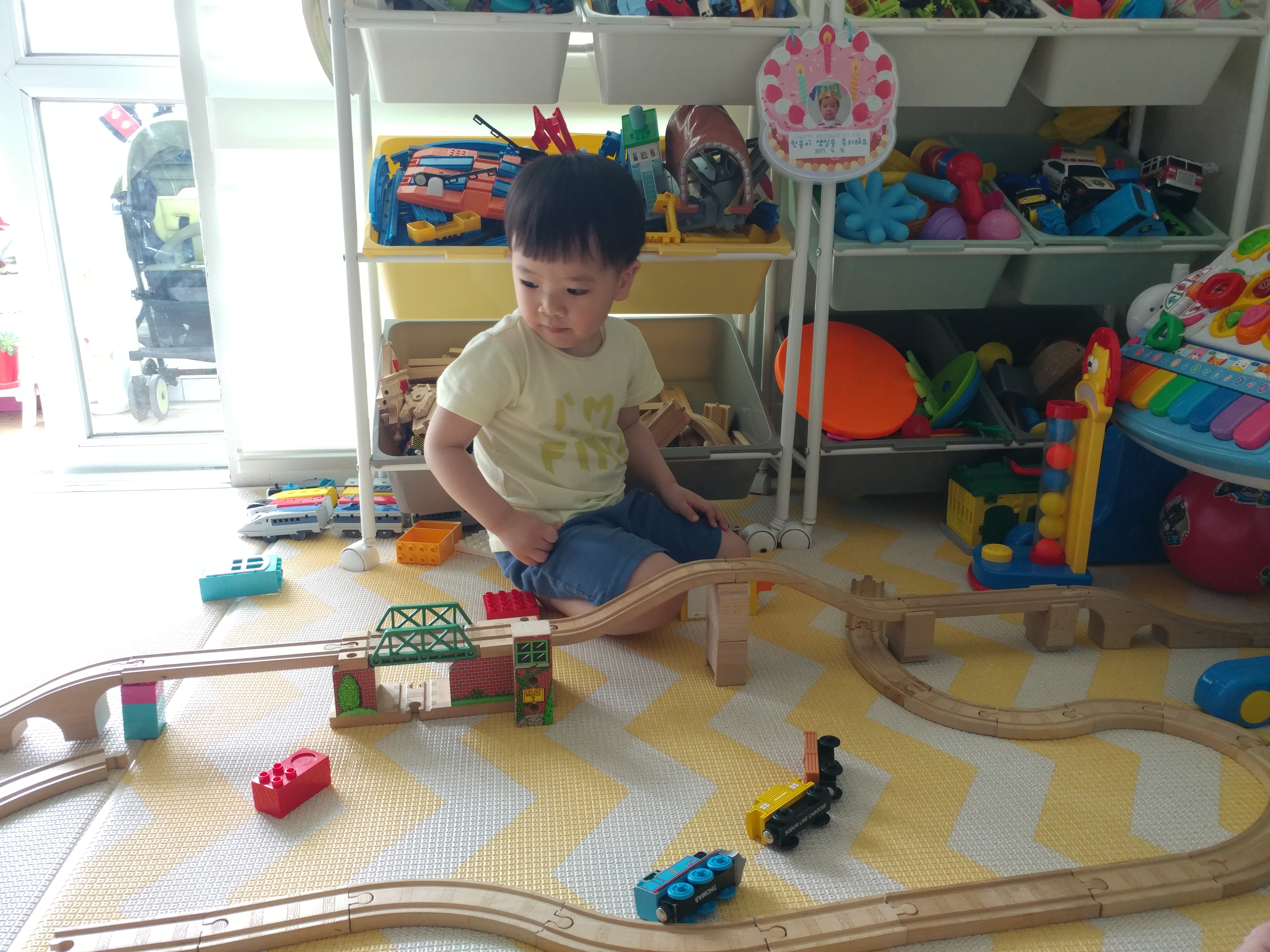 2016년 11월 신혼집에서 이모가 선물한 장난감 기차와 함께