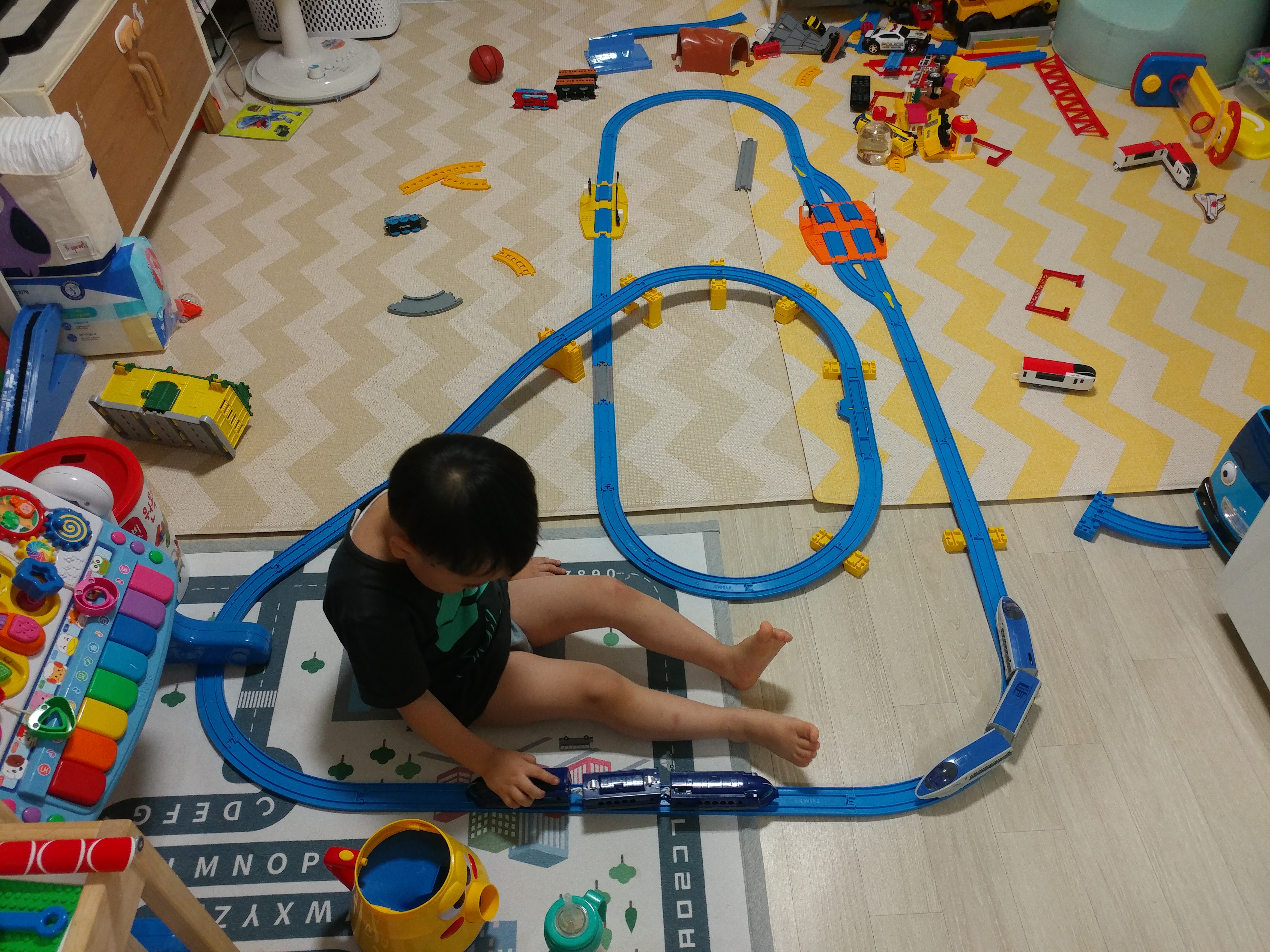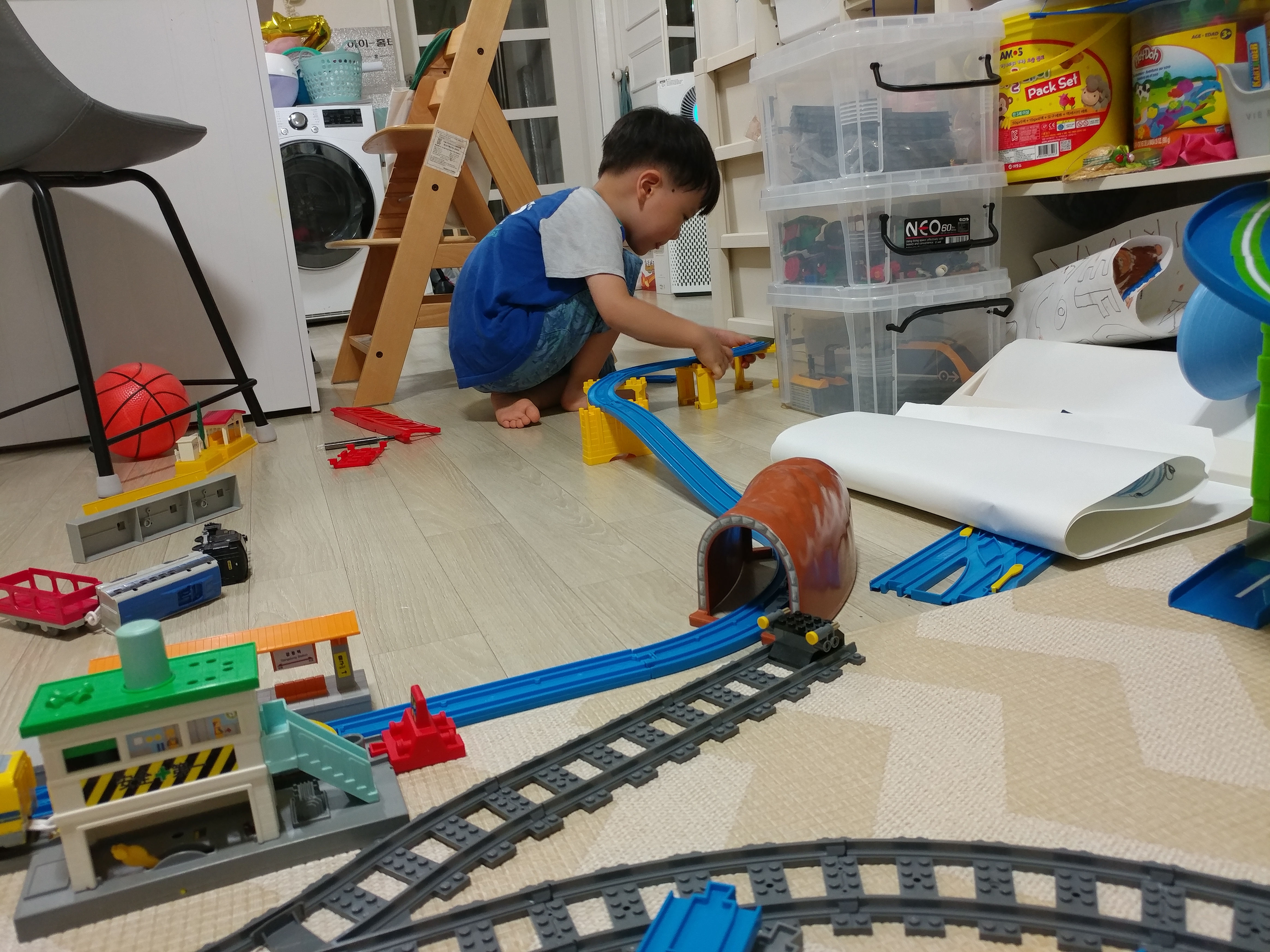 거실이 너저분해서 기찻길을 한번 싹 다 정리하면 지치지도 않고 다시 만들었고...