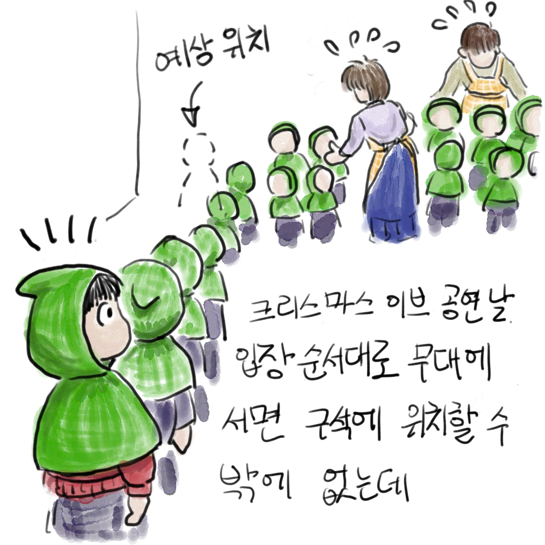 선생님의 도움을 받아 일렬로 무대로 올라가는 아이들 중에 별이의 위치는 거의 끝이었다.