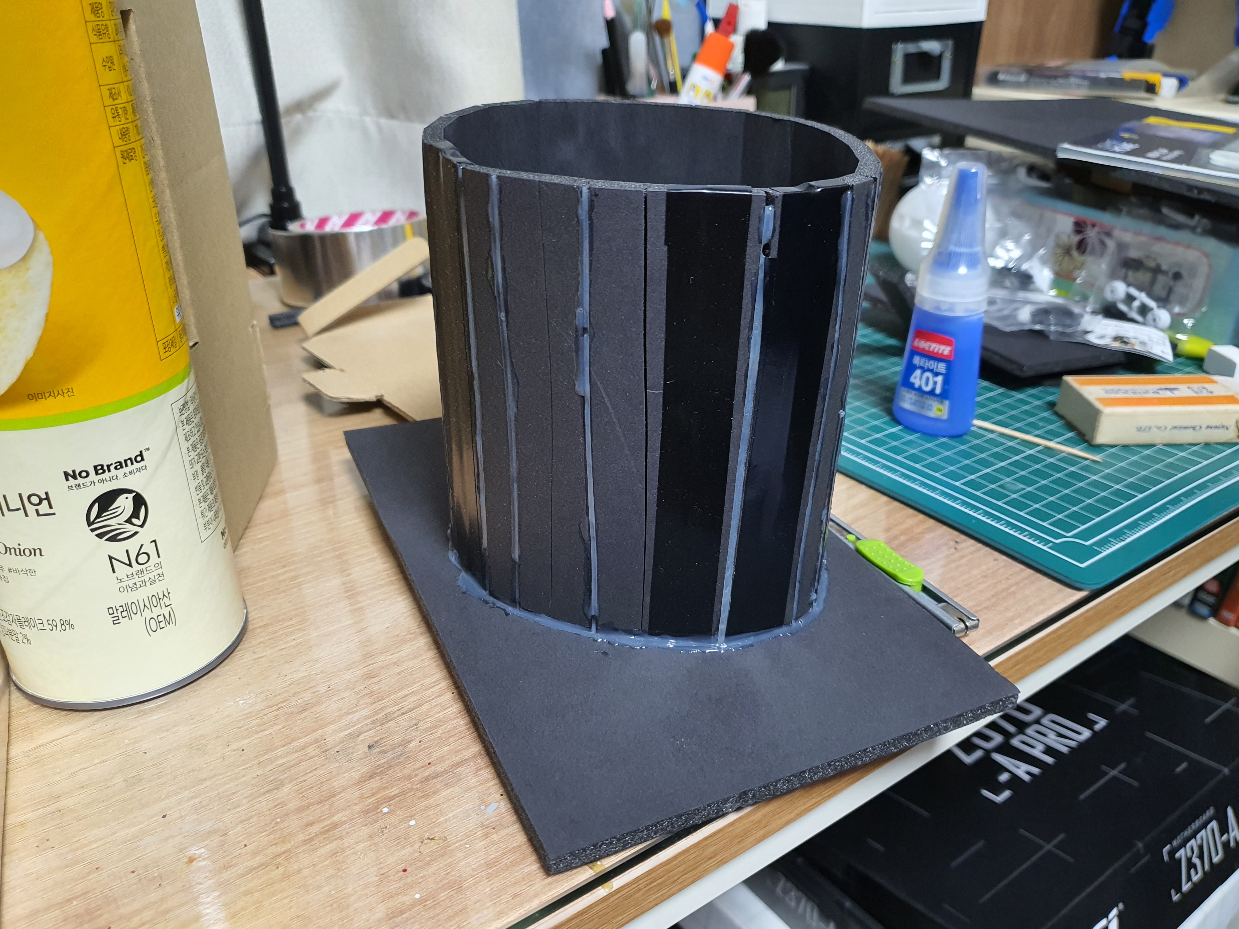폼보드의 두께를 이용해서 마지막 최종 덮개를 목공풀로 붙여주면 끝.