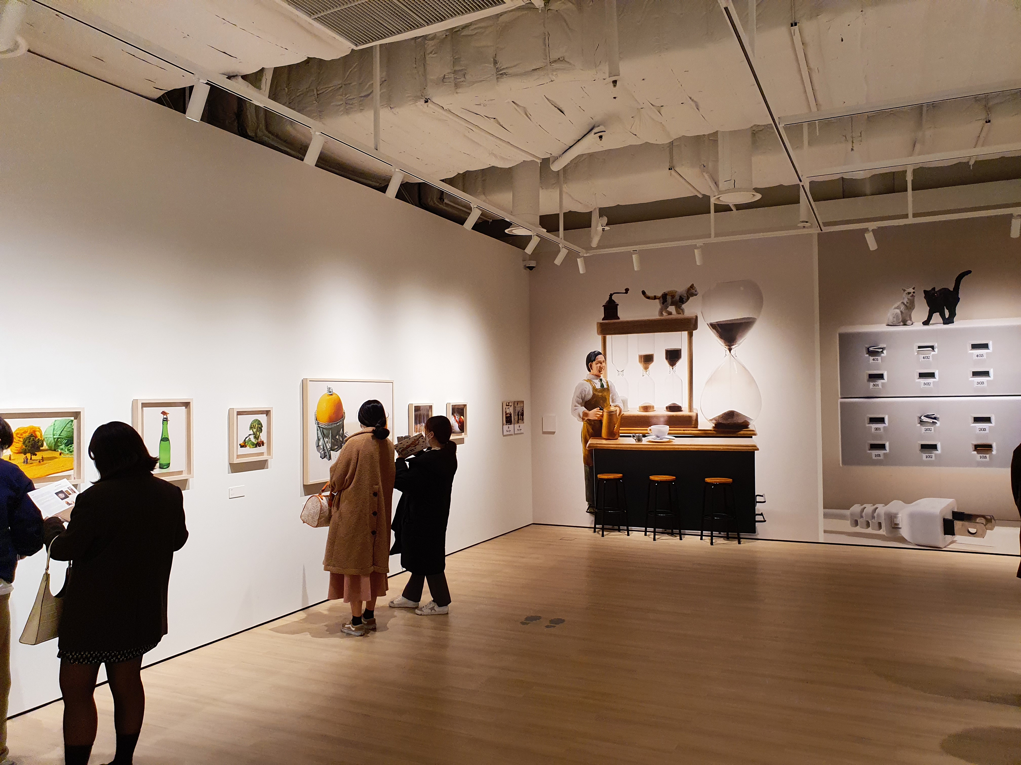 사진 작품만 걸려있는 경우에도 사진에 사용된 미니어처가 액자에 함께 들어 있어서 실물의 크기를 짐작하게 해주는 것도 있다.
