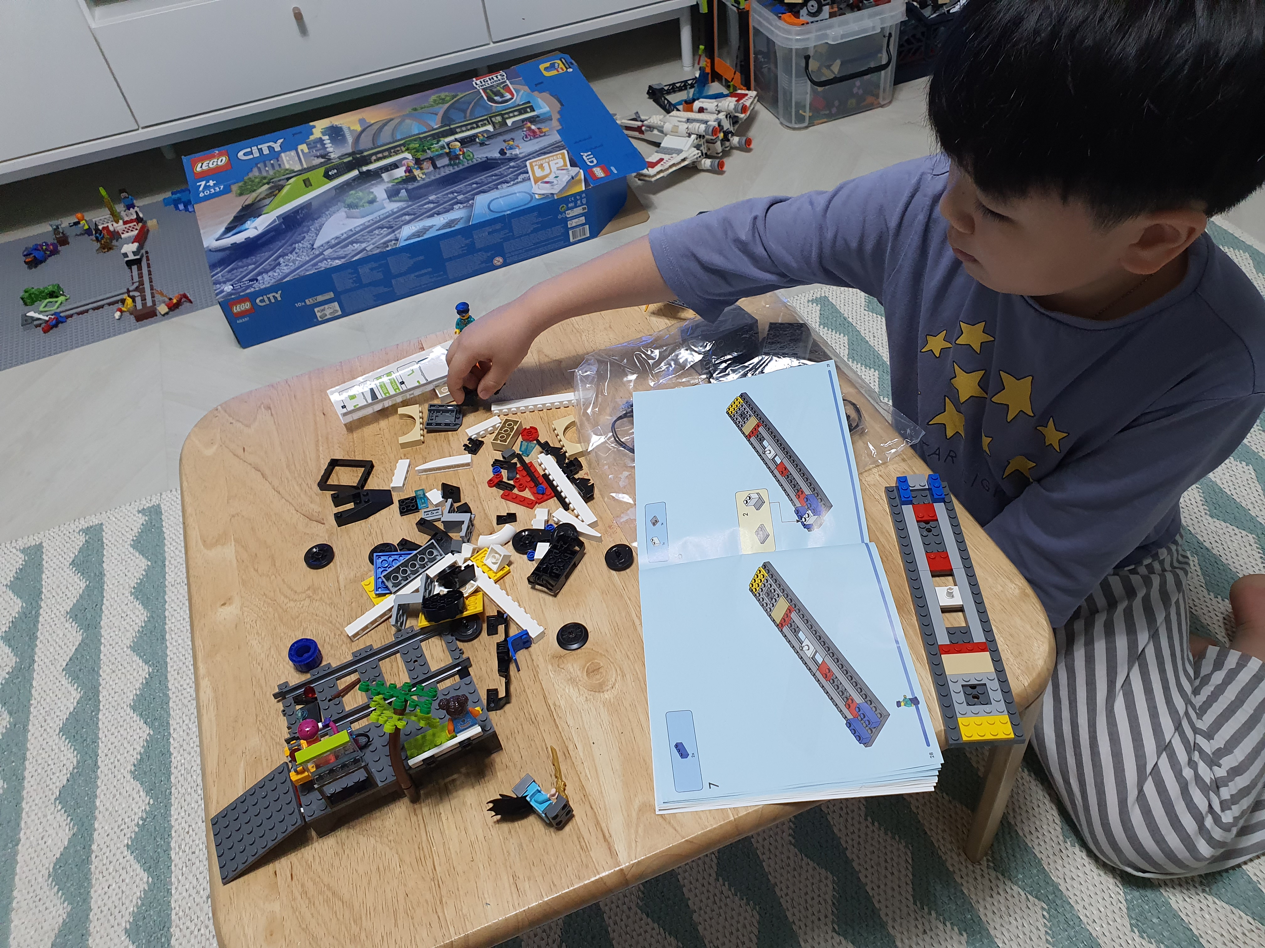 60337 고속 기차는 별이가 받은 선물인 만큼 별이가 모두 조립하게 해주고 싶었으나...