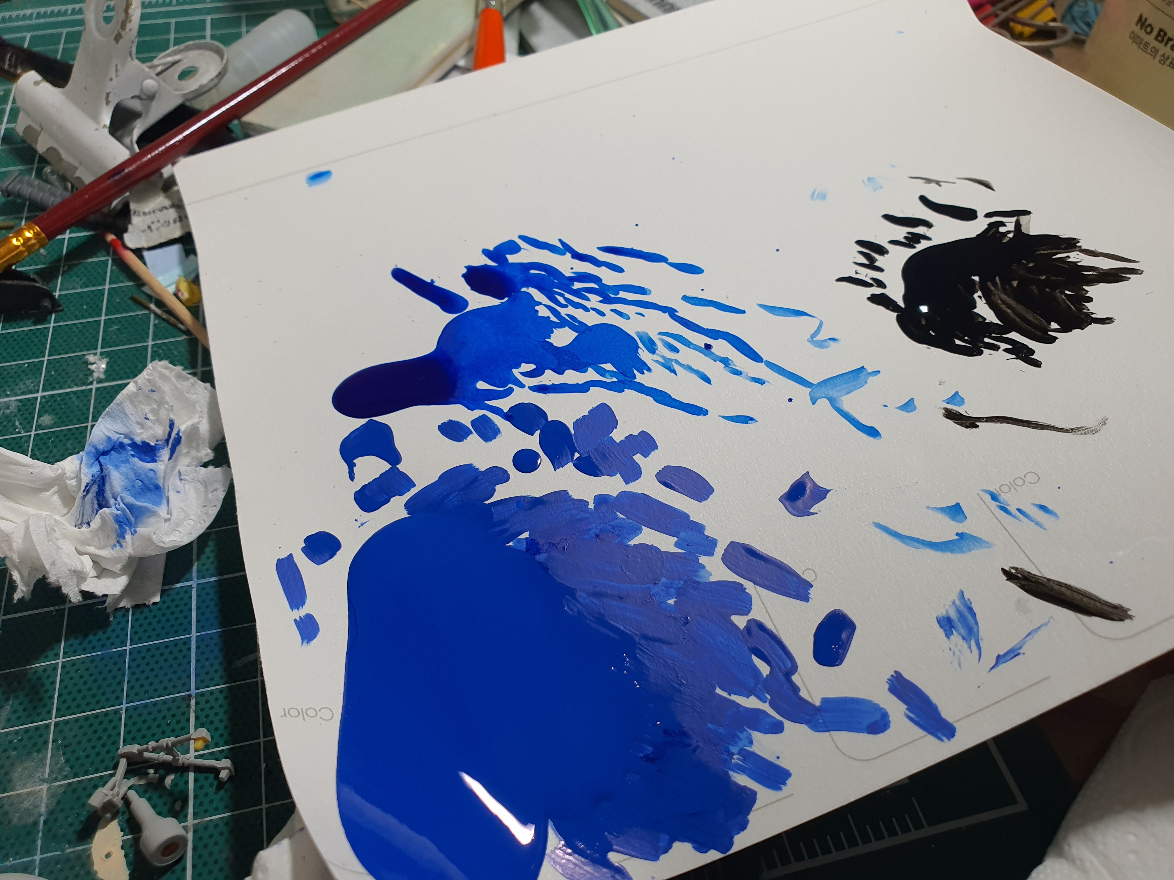 2톤 컬러를 해보려고 좀 더 진한 파란색을 팔레트에 덜어내는데, 이쪽은 너무 묽은 느낌이다.