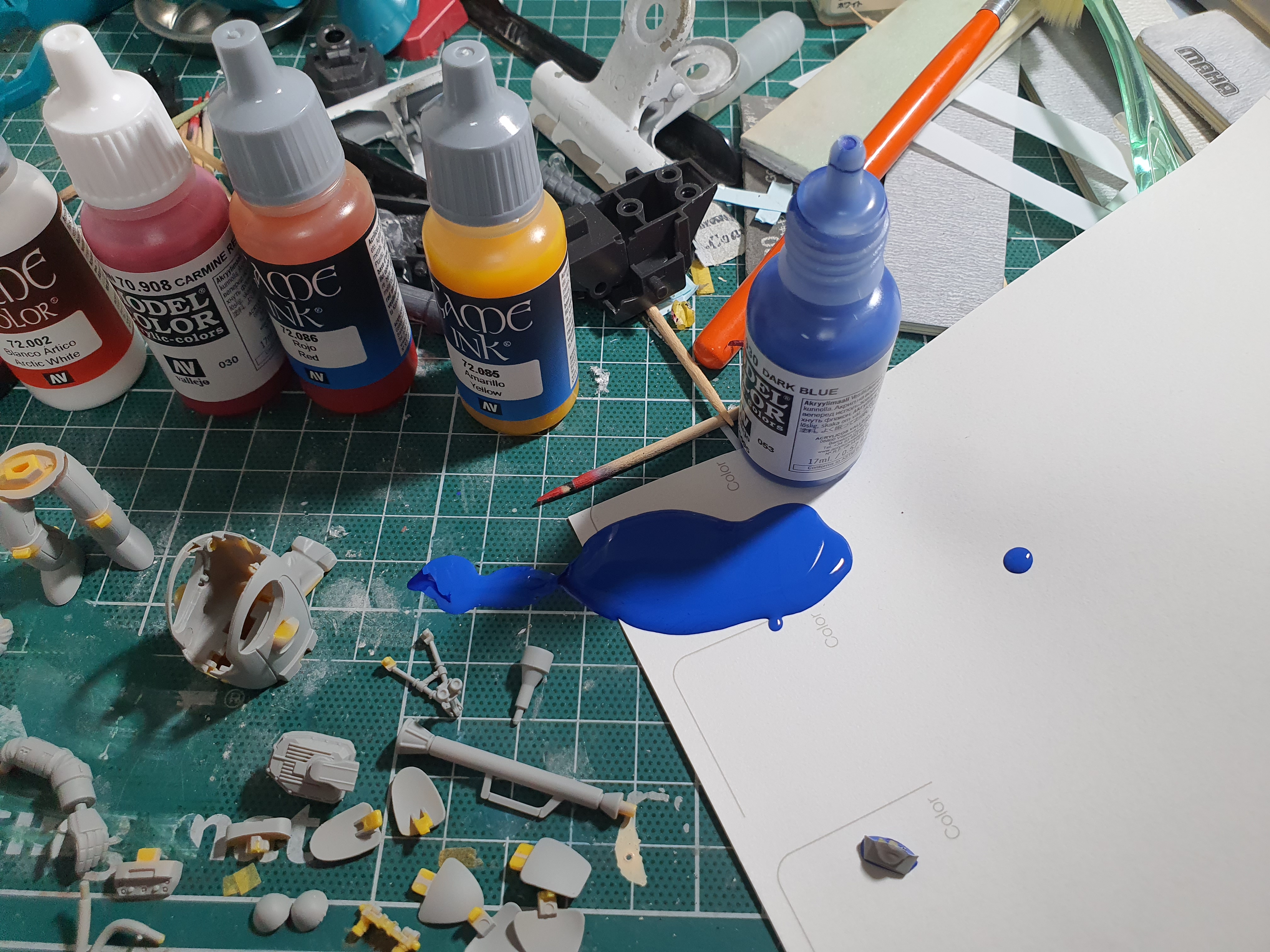 피부색을 만들기 위해서 일반 도료에 워싱용 노란색 도료를 섞어서 만들었는데...