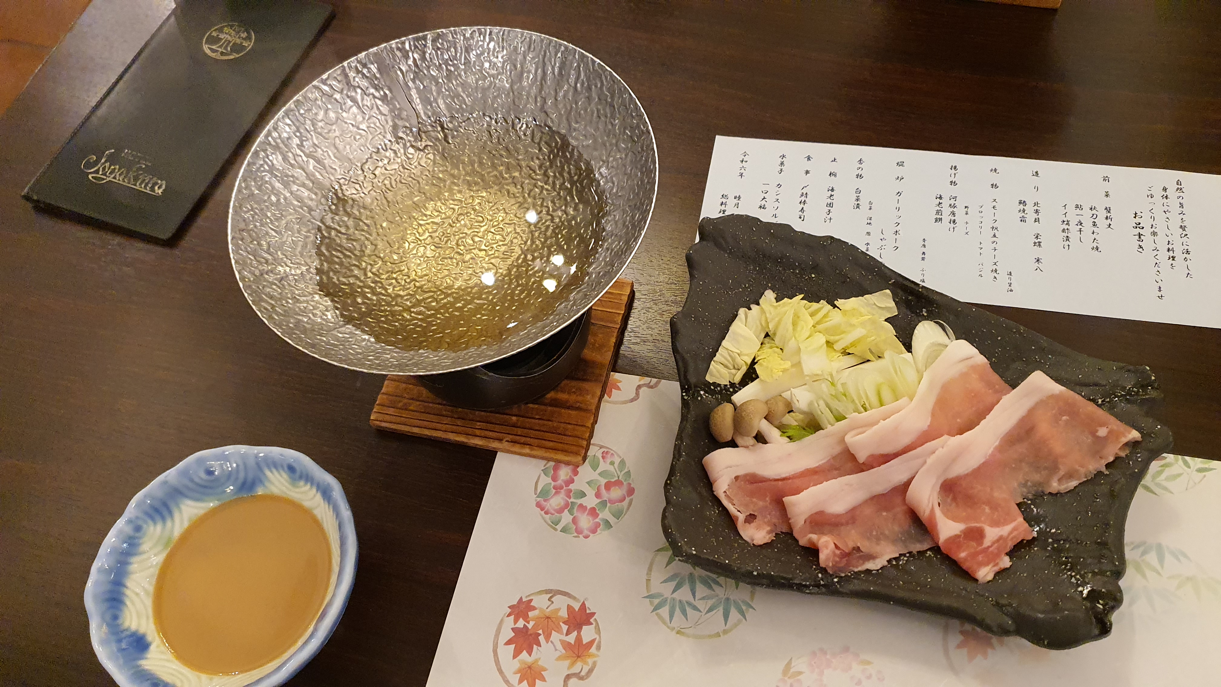 바닥에 깔린 튀김까지 먹고 나니까 샤부샤부가 나왔다.