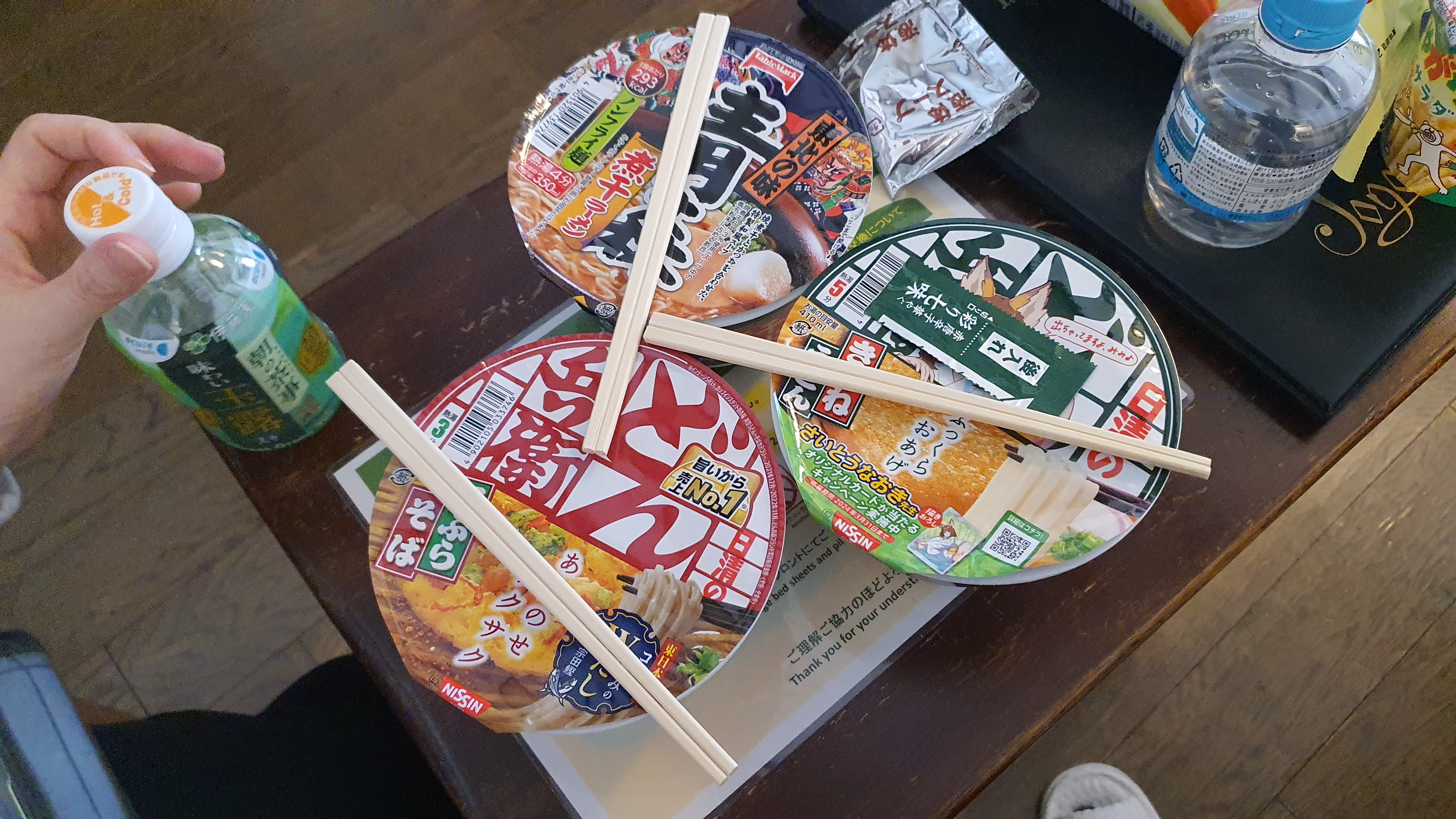 도착해서 미처 해결하지 못한 점심을 때워야 했는데... 호텔 매점에 구비된 것들 중 식사로 할만한 것은 라멘뿐이었다.