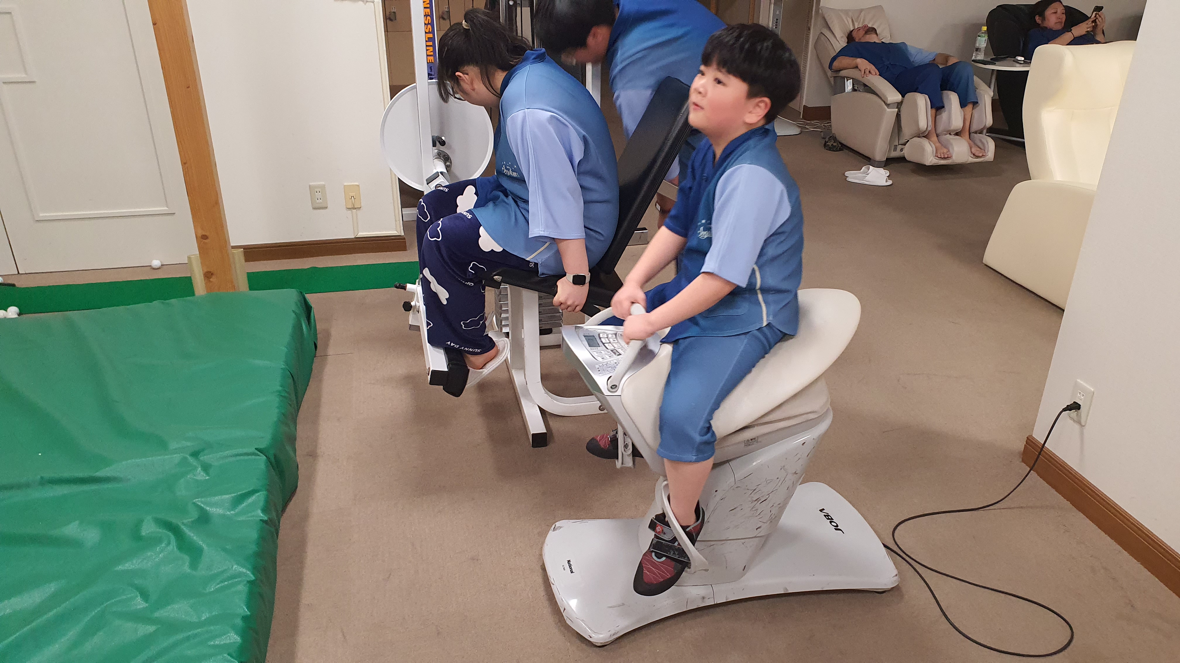 온천욕을 마치고 아까 봐두었던 운동기구(라고 쓰고 놀이기구라 읽는다)를 가볍게 즐기고 침실로 돌아왔다.