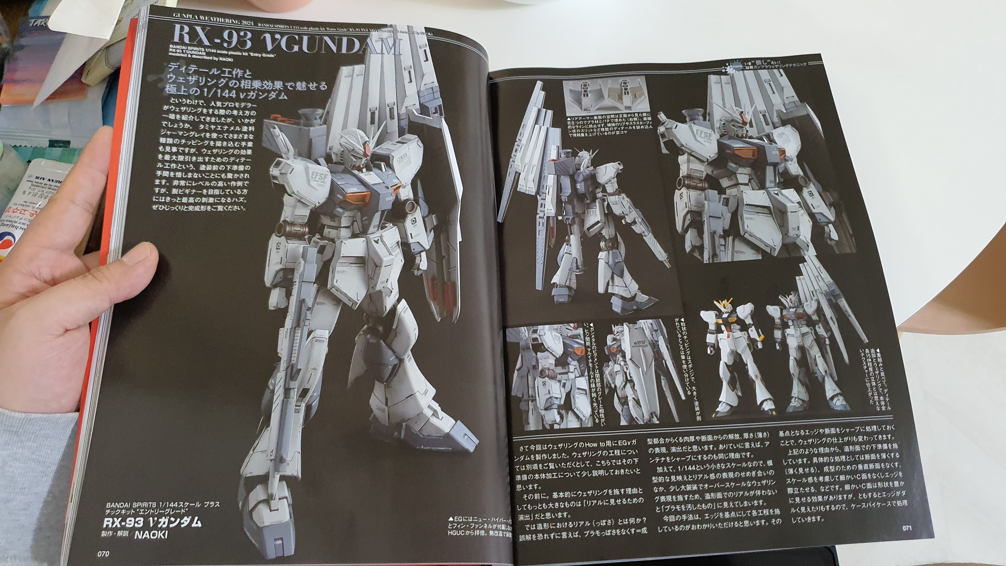 메카 디자이너이자 모델러인 나오키 씨의 EG 뉴건담 작례가 소개되어 있다!!>ㅂ</