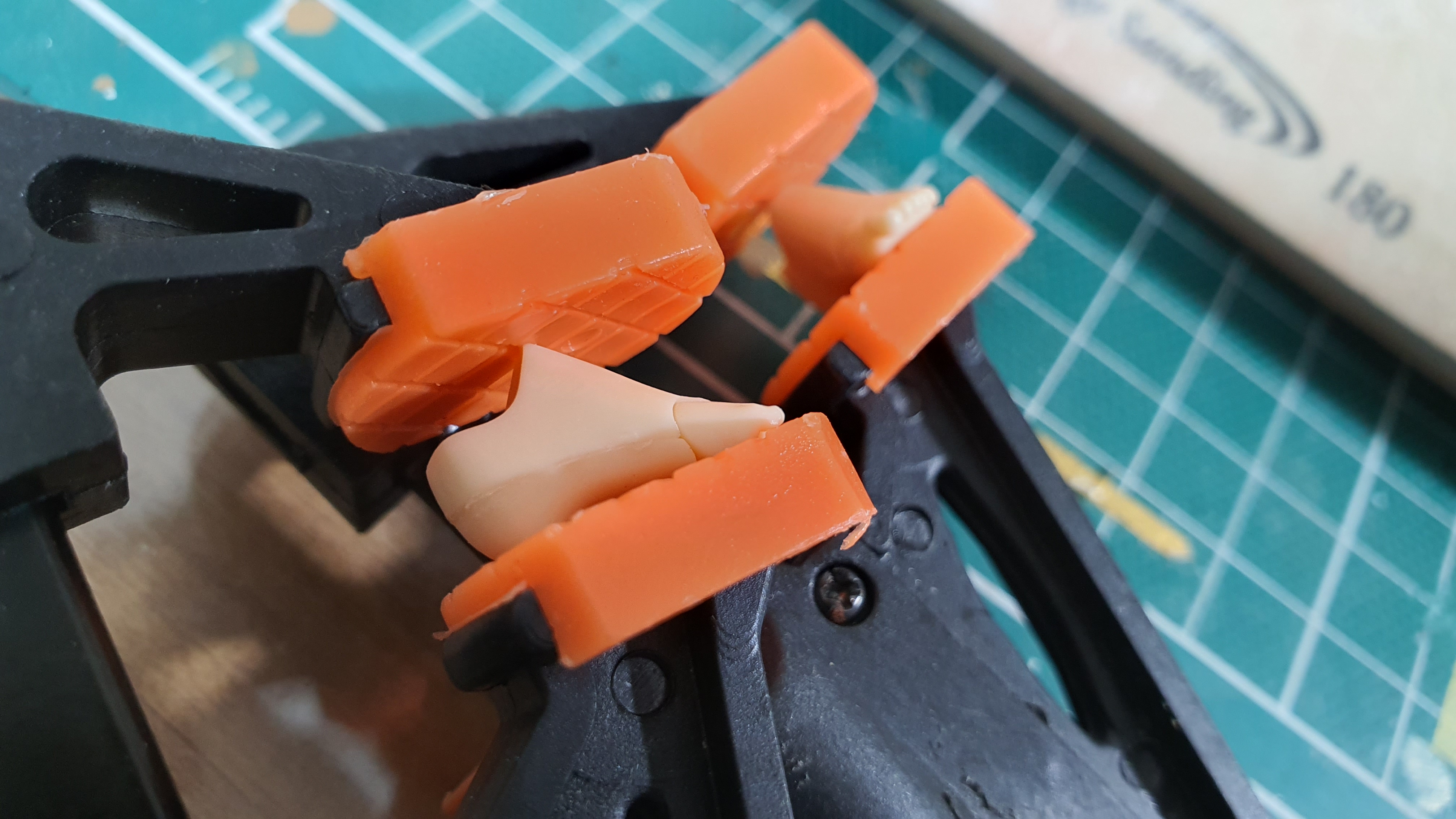 역시 성공적으로 접착제가 발라진 발목 부품.