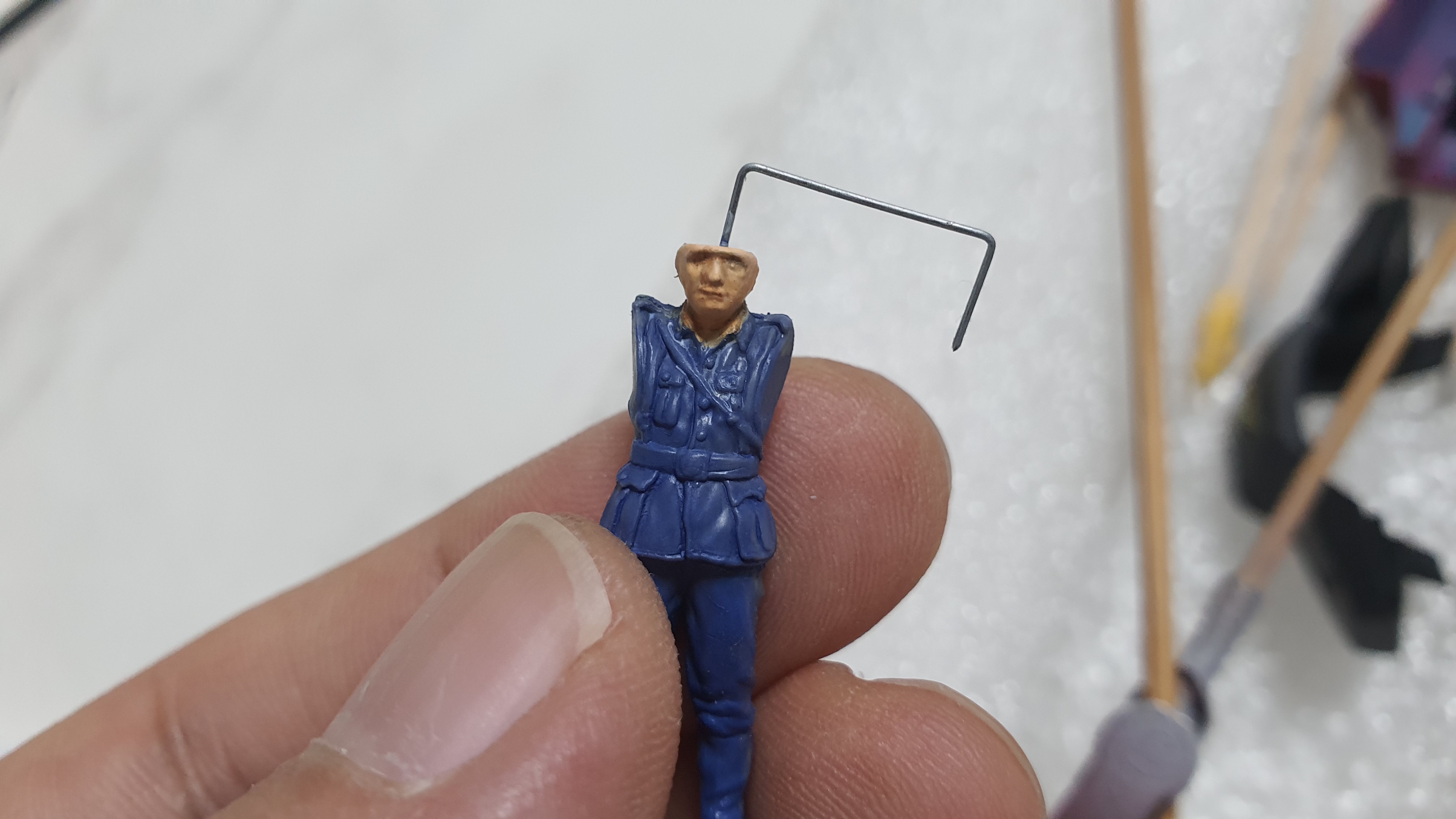 망원경을 든 모형의 경우에는 넓은(?) 머리에 구멍을 뚫어서 스테이플러 심을 꽂아주었다.