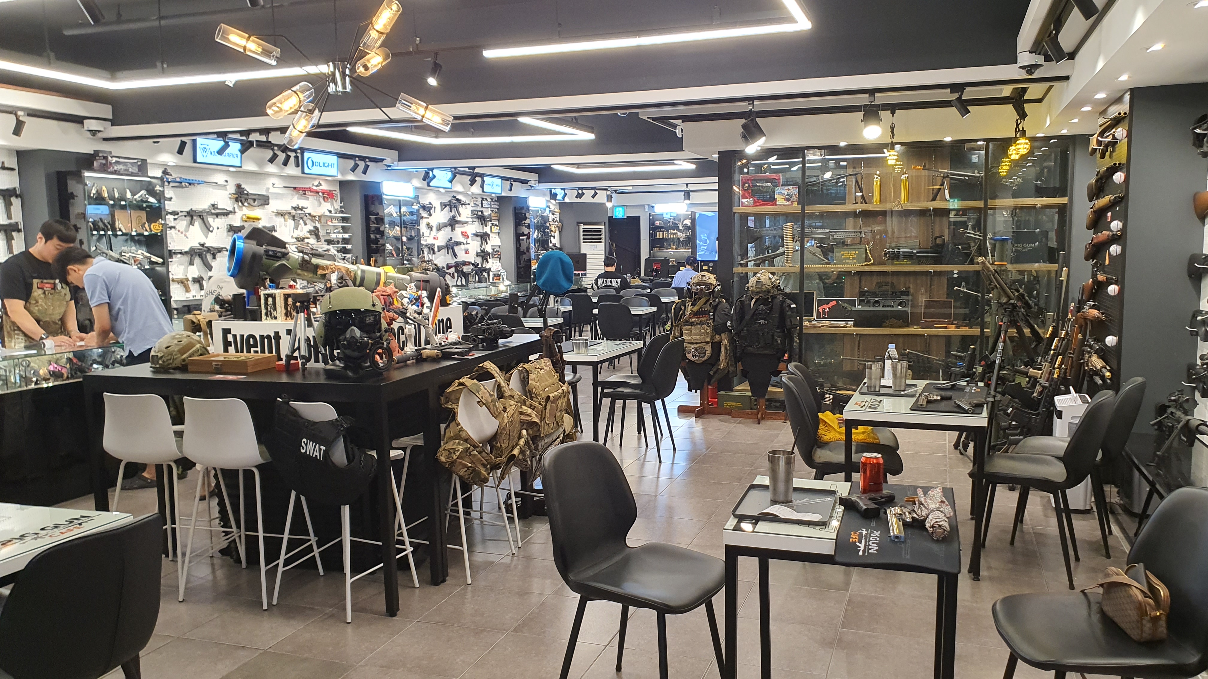 미처 사진으로 남기지 못한 장소 중에 모델건을 쏴보는 별도의 공간이 있고, 주문시 제공되는 티켓으로 그 공간에서 쏴볼 수 있다.