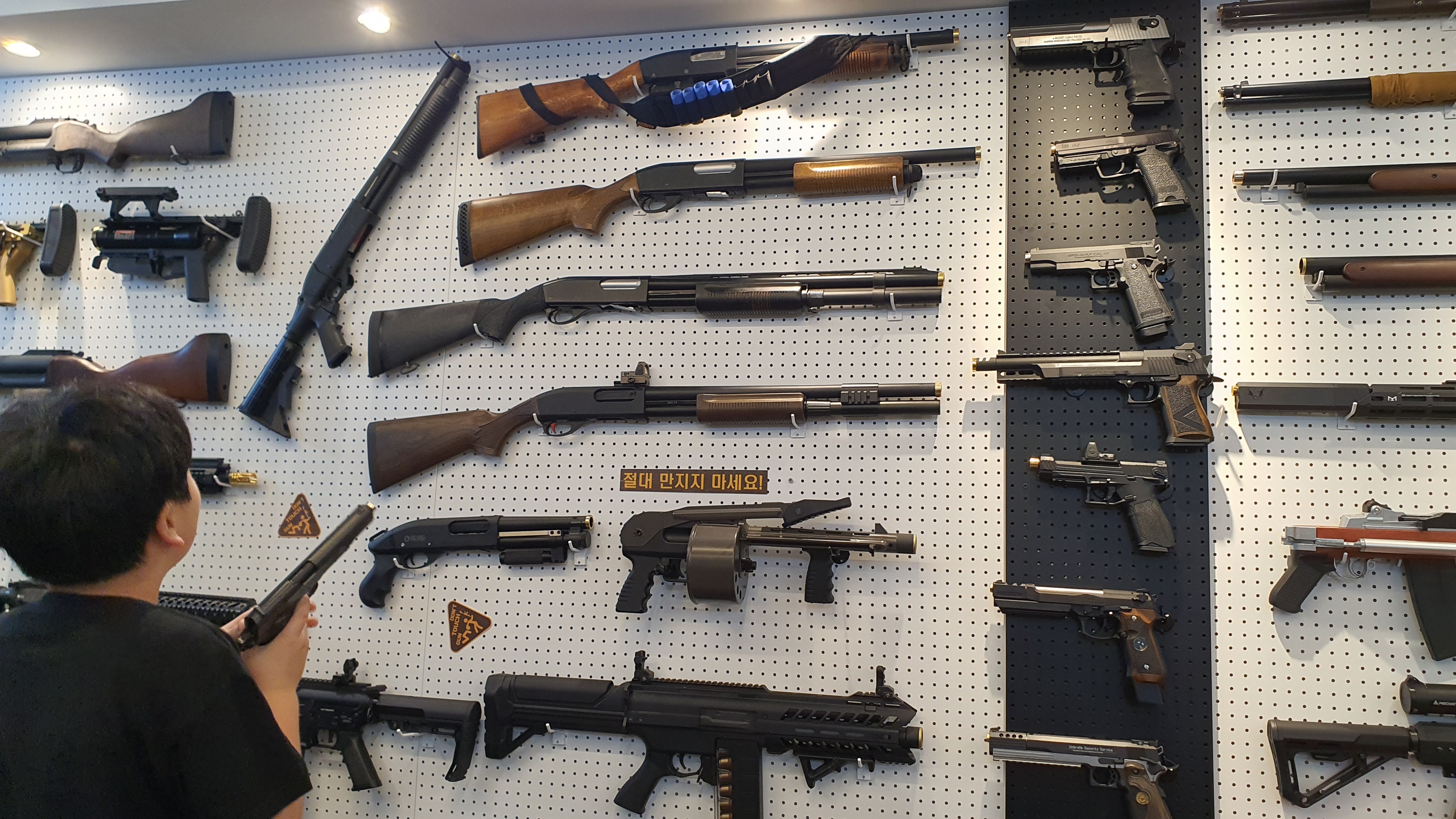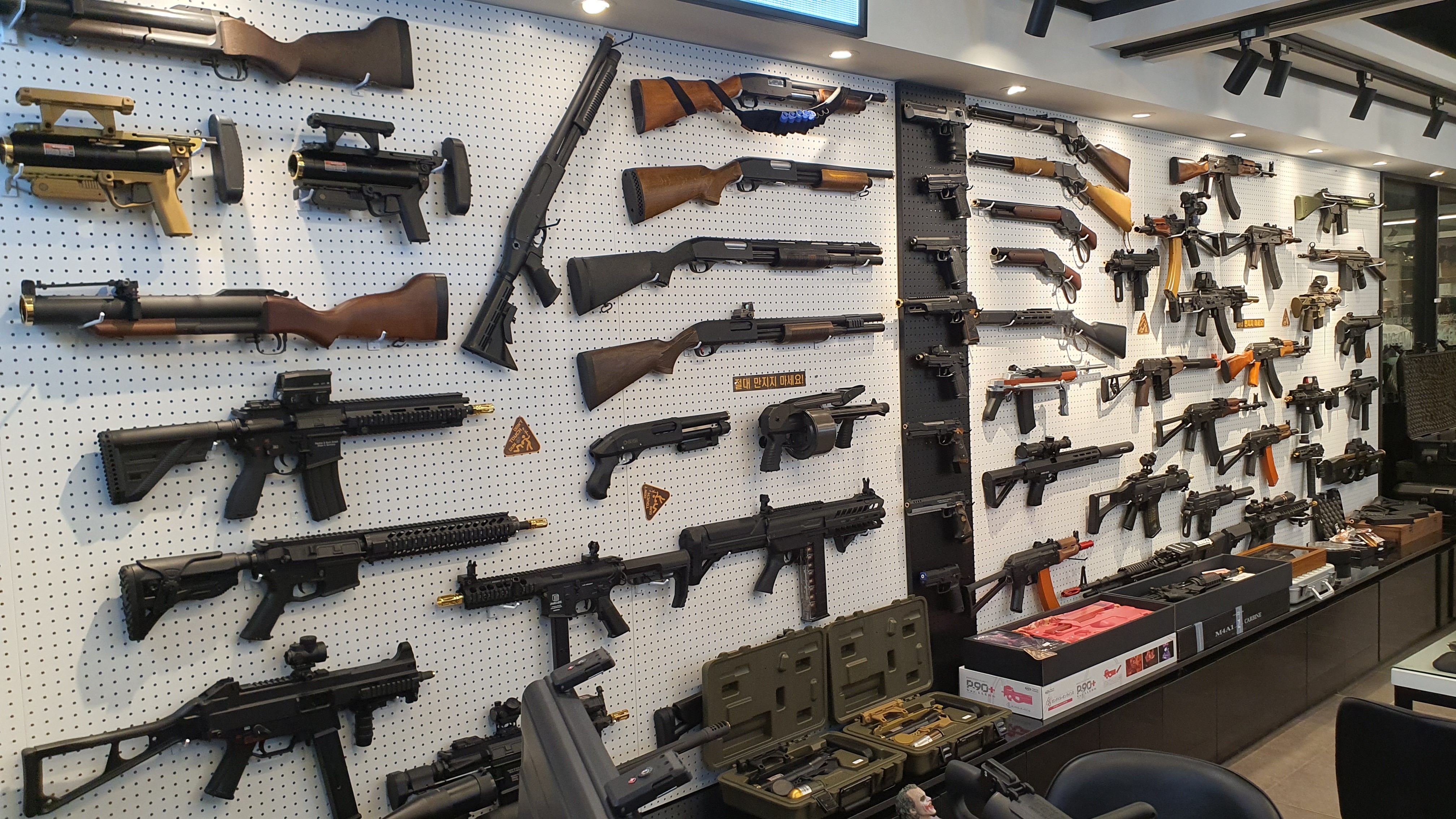 테이블에 제공된 모델건을 제외하고, 기본적으로 전시된 총은 전부 만지면 안 된다.